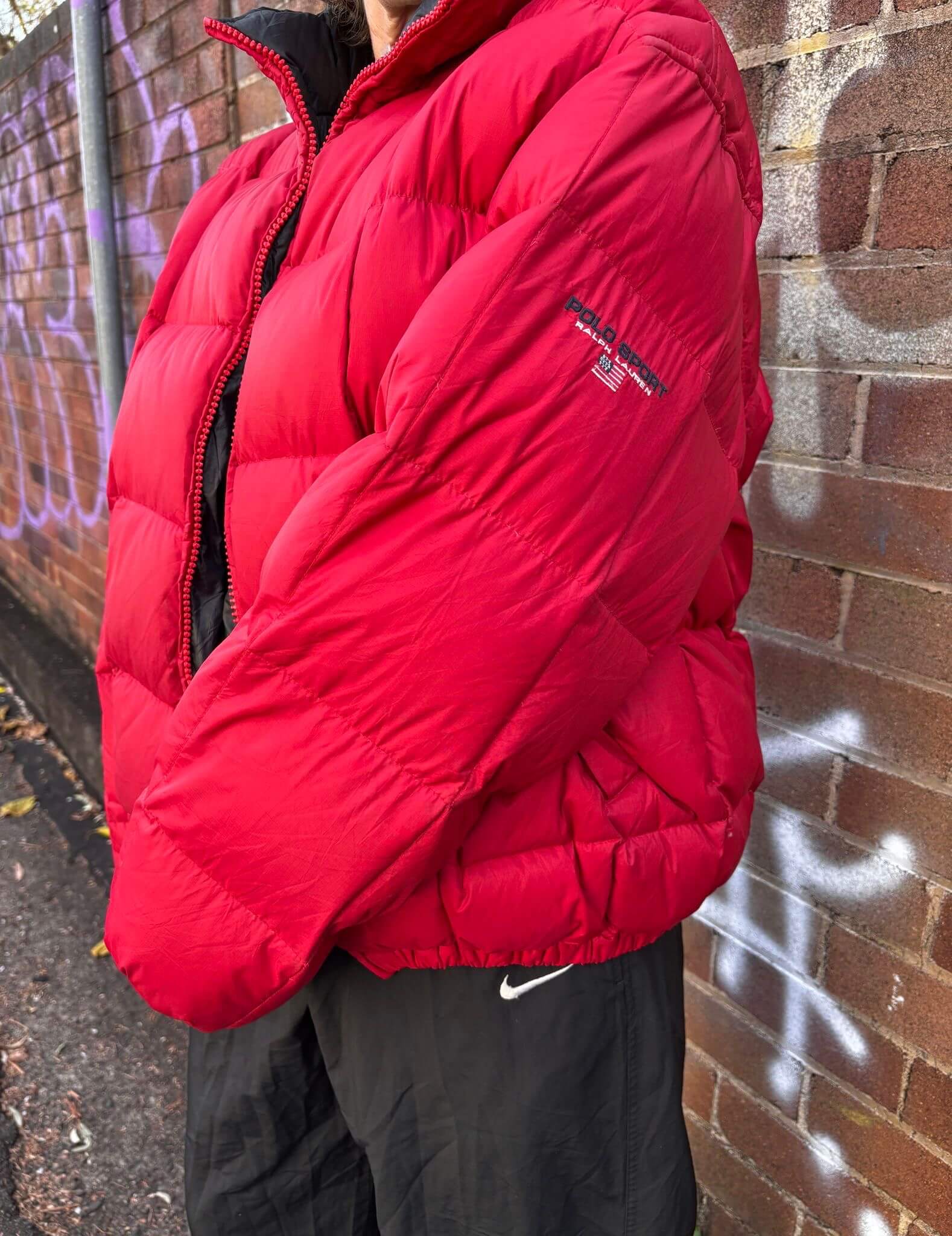 Vintage 90s Polo Ralph Lauren Down Jacket Sz M Red Puffer Embroidered Logo Boxy